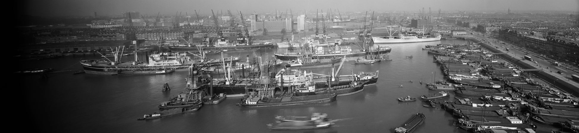 Titel: Binnenvaartschepen in de Maashaven, Rotterdam (1956)