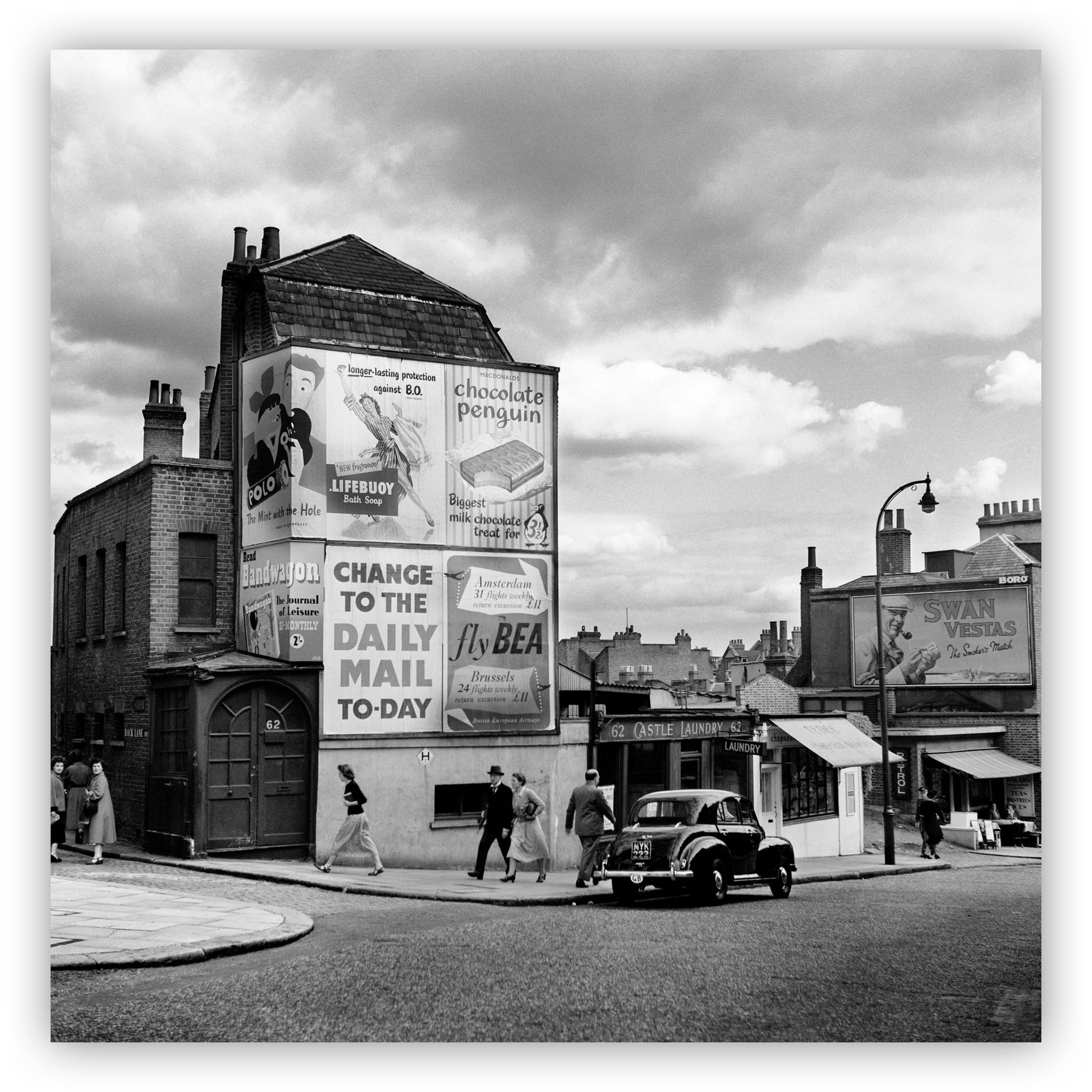 Title: Aanplakbiljetten in het Londense straatbeeld, Engeland (1953)