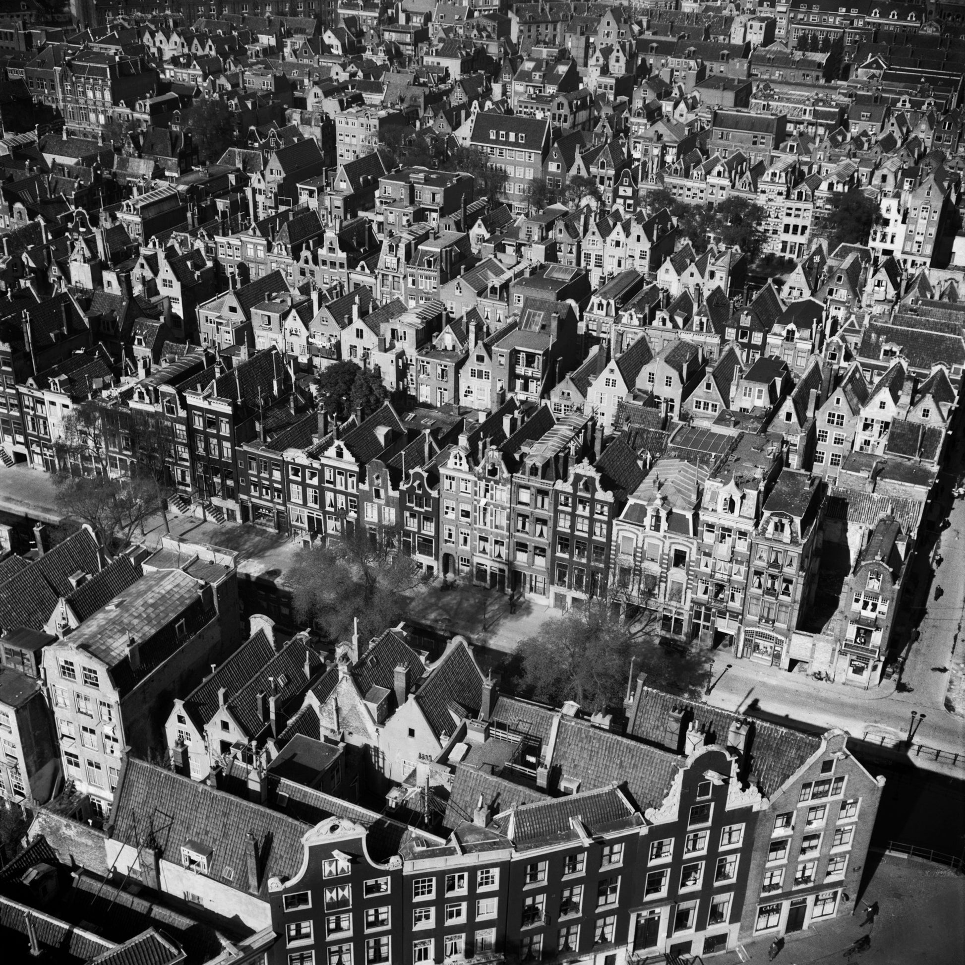Title: Zicht op de Jordaan vanaf de Westertoren in de voorgrond de Bloemgracht, Amsterdam (1937-1947)