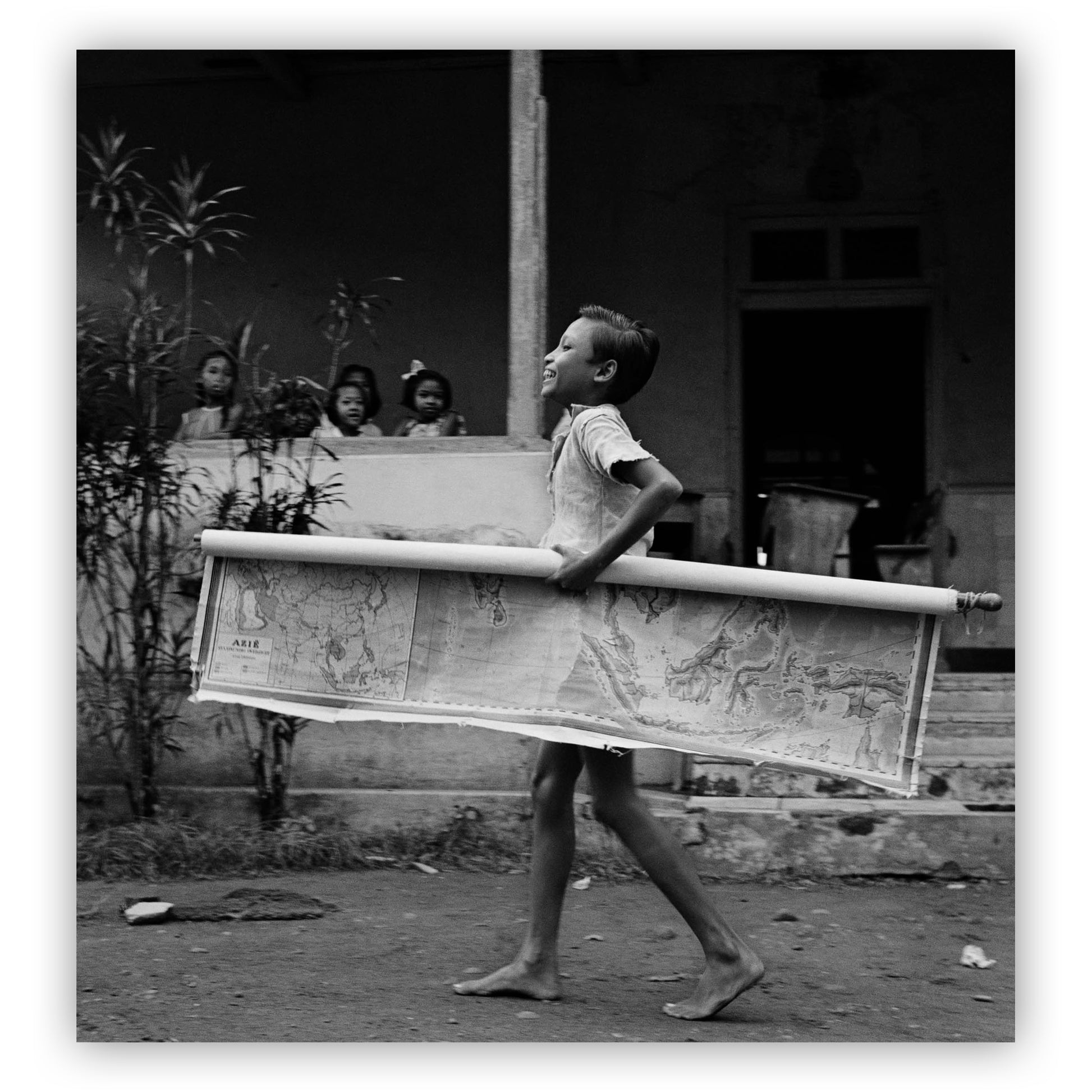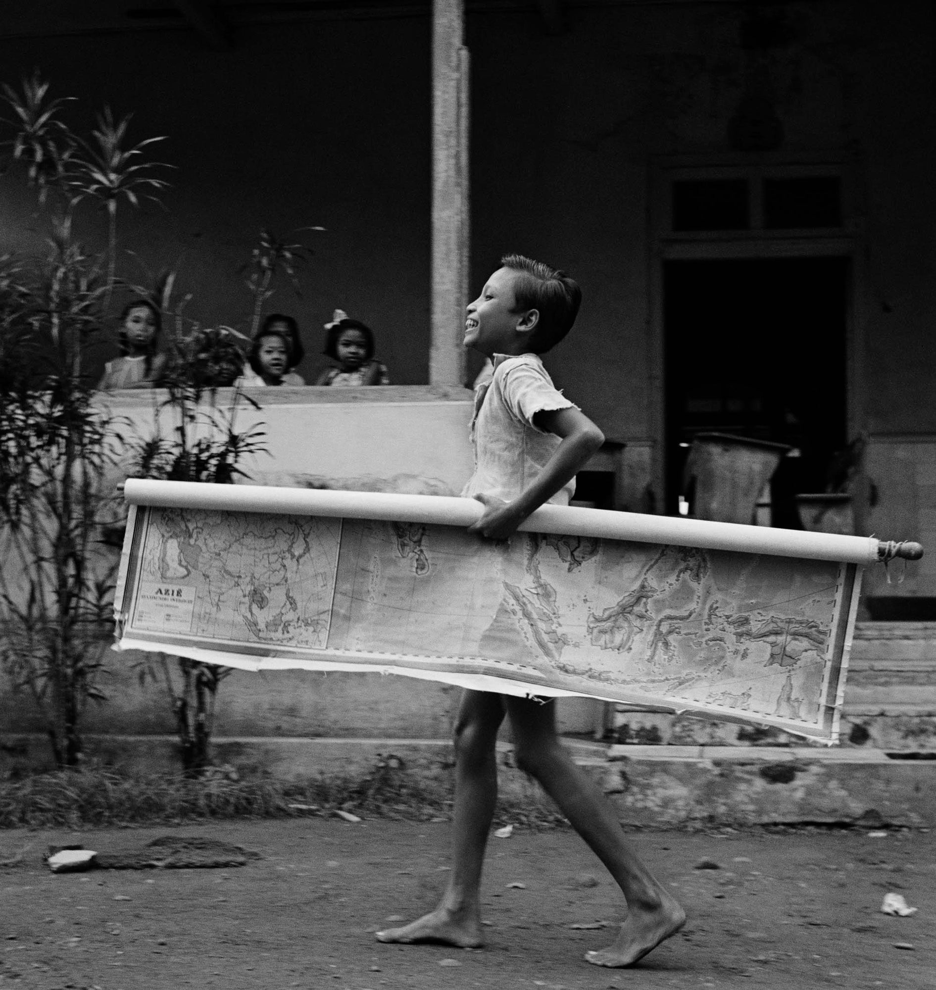 Title: Jongen met blinde landkaart van Indonesië, Jakarta, Indonesië, 1947